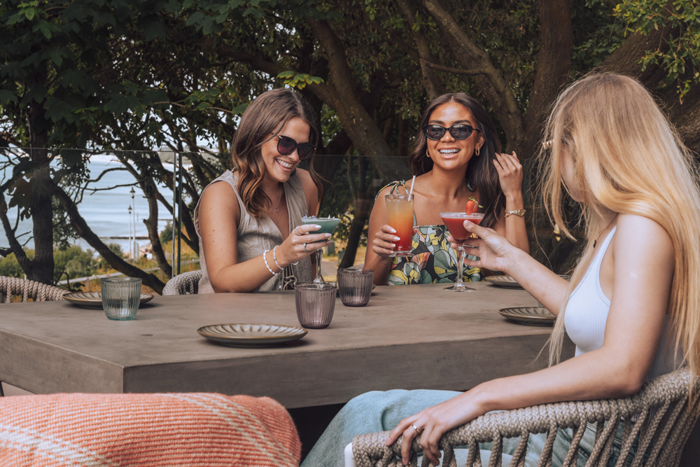 Our space exudes luxury, with a contemporary atmosphere that blends bold prints with statement décor and tropical plants, providing a laidback yet elevated ambience for all to enjoy. Take in the stunning sea views from our sunny terrace while you sip on crafted cocktails or challenge your friends to a round of foosball by the bar. Enjoy al fresco dining in Bournemouth!