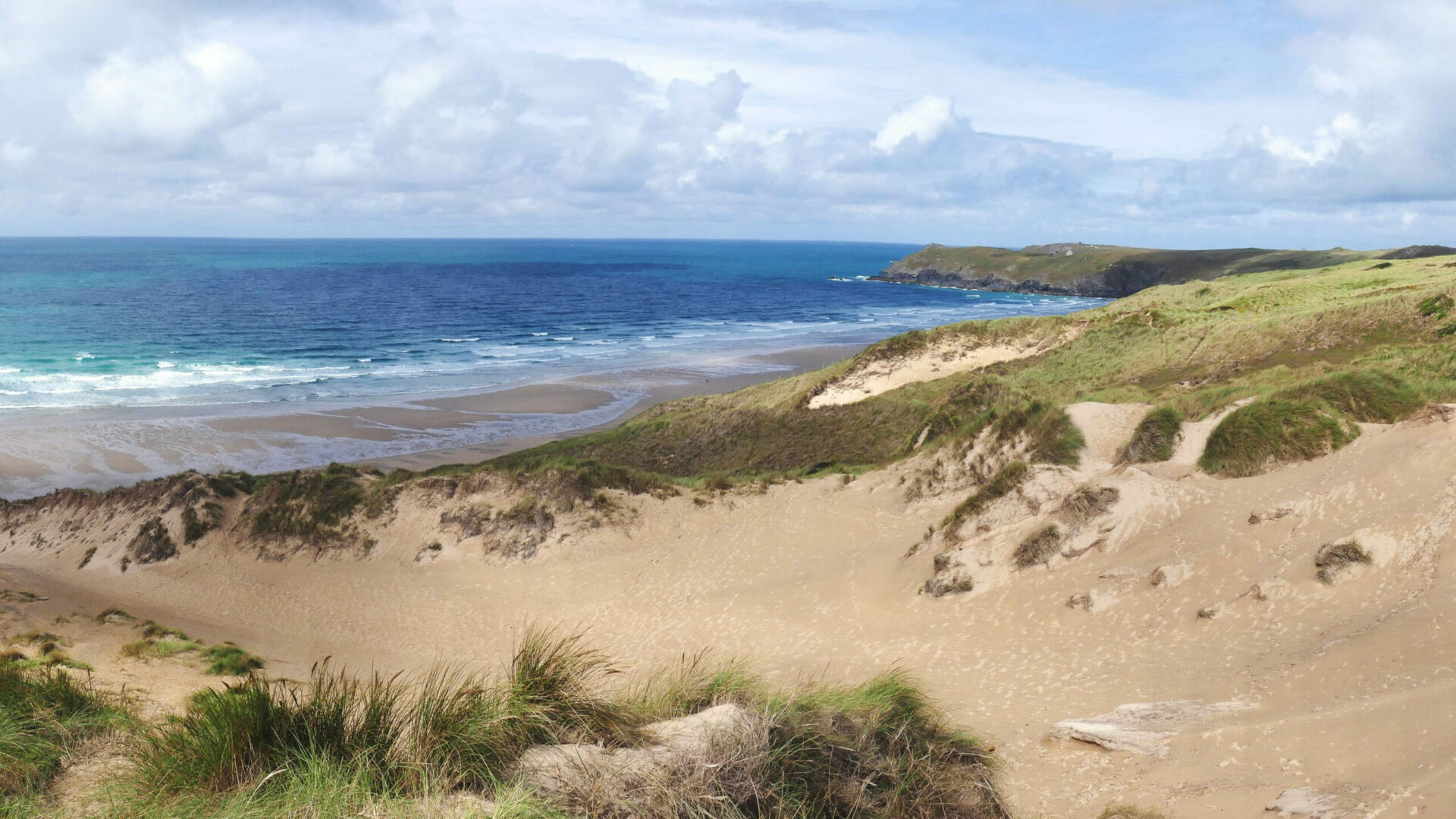 Its wide sands and surrounding dunes make it a favourite for those seeking space, calm and scenic beauty.